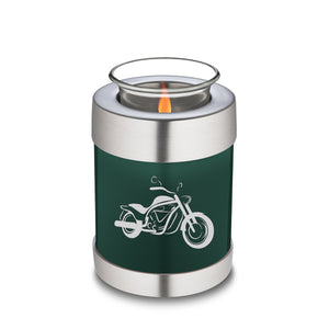 Honor the memory of your loved one with the Embrace Motorcycle Cremation Urn for Ashes. This beautiful urn displays a silver motorcycle. This is a perfect resting place for a free spirit, someone who enjoyed riding the open road.