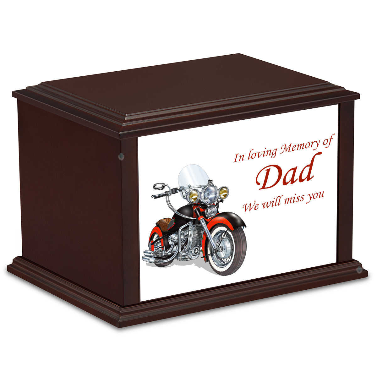 It’s not just about the ride; it’s about the journey, the freedom of the wind, and the endless road stretching toward the horizon. For those who are living life on two wheels, this custom-printed wood cremation urn is a heartfelt tribute to their passion and life.