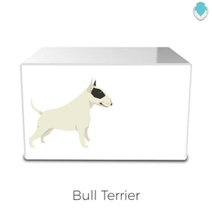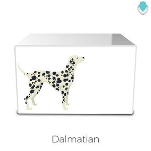The Custom Printed Heritage Dog Breeds White Wood Box Pet Cremation Urns are elegant and modern in design. This Heritage Urn for ashes displays 15 most popular dog breeds in the US.