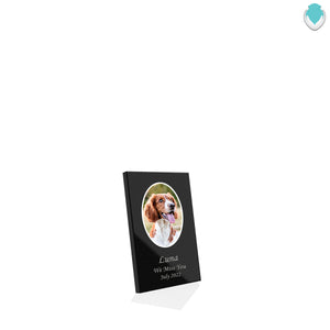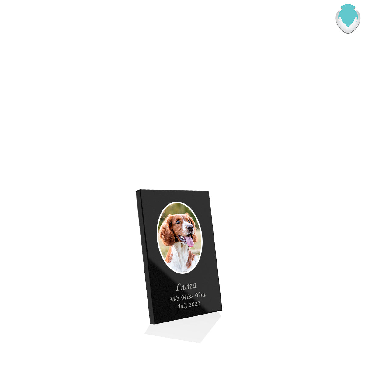 Artistically hand-crafted from premium black granite, this plaque combines elegance and durability, offering a timeless way to memorialize your beloved pet. GetUrns’ Marble Plaques are personalized in the USA with the utmost care and precision. These vertical plaques are available in three sizes: Large: 8.5"W x 11"L, Medium: 5"W x 7"L, and Small: 4"W x 6"L. And the thickness of these memorial plaques is 0.375"H.