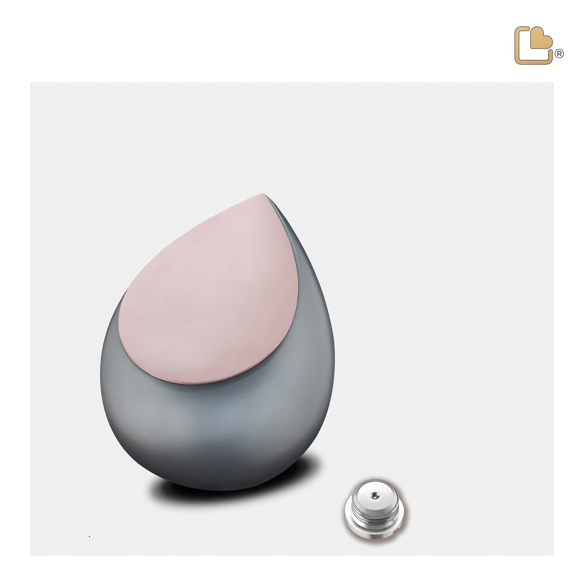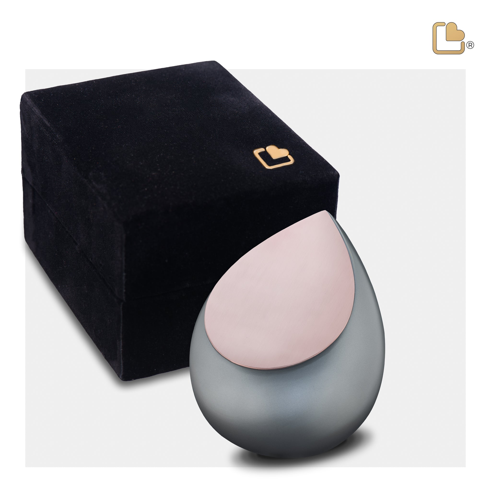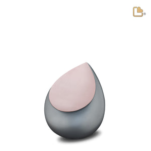 The Drop™ Keepsake Cremation Urn exudes a sense of grace and tranquility. Its grey color represents depth and serenity, while the brushed rose gold accents add a touch of refinement. This urn's design draws inspiration from the natural beauty of a teardrop, symbolizing the emotions and memories cherished within.