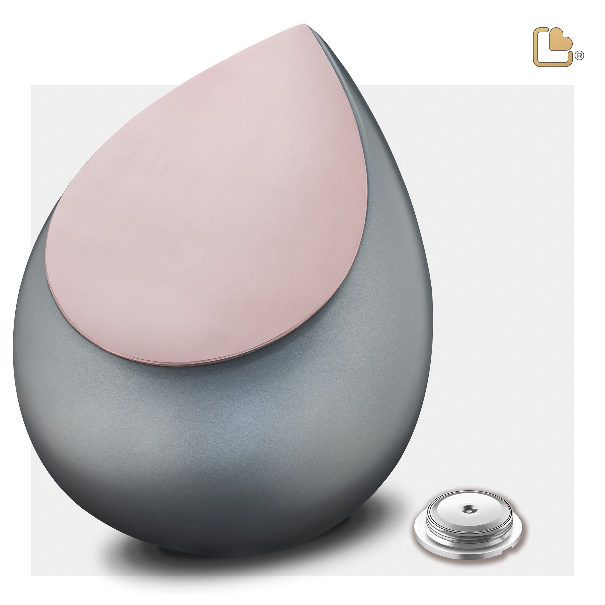 The Drop™ Standard Adult Urn exudes a sense of grace and tranquility. Its grey color represents depth and serenity, while the brushed rose gold accents add a touch of delicacy. This urn's design draws inspiration from the natural beauty of a teardrop, symbolizing the emotions and memories cherished within.