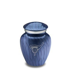 Honor the memory of your loved one with a Keepsake Embrace Golfer Cremation Urn for Ashes. This beautiful urn displays a scene of a golfer swinging a club. This is a perfect resting place for someone who enjoyed golfing.
