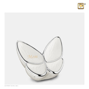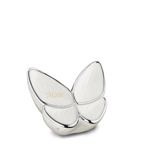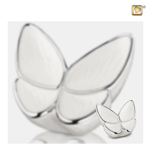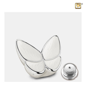 A timeless symbol of rebirth and change, the butterfly embodies the soul's journey. Like its graceful emergence, the soul finds release and serenity beyond life's bounds. The Wings of Hope Keepsake Urn, a beautifully crafted memorial, is made from high-quality brass and alloy, offering durability and timeless elegance. The delicate pearl-white finish speaks of purity, calm, and tranquility. A symbol of eternal love and innocence, white invites spiritual reflection. Enhanced by polished silver, the design reflects a timeless and enduring connection.
