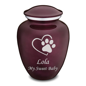 Honor the memory of your beloved pet with the Embrace Single Paw Heart Pet Cremation Urn for ashes. This beautiful urn displays a single paw stamped onto a heart. This gorgeous urn is a perfect resting place and forever home to represent the lasting impact our pet has on our hearts.
