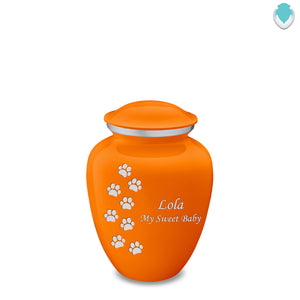 Honor the memory of your beloved pet with the Embrace Walking Paws Pet Cremation Urn for Ashes. This beautiful urn displays a path of tiny paws walking upwards. This is a perfect resting place and forever home for your furry friend.
