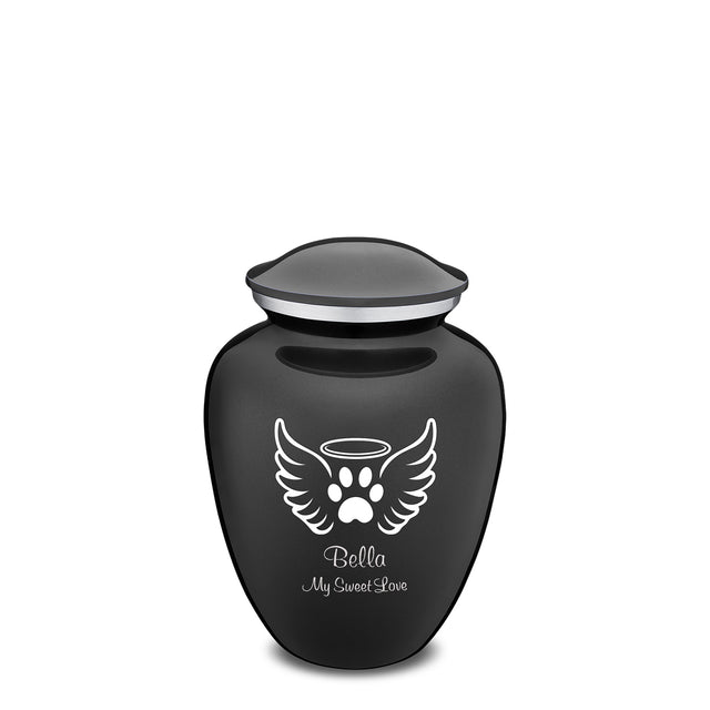 Honor the memory of your beloved pet with the Embrace Charcoal Black Pet Angel Wings Cremation Urn for ashes. This beautiful urn displays a minimalistic pet design. This gorgeous urn is a perfect resting place and forever home for your darling pet.