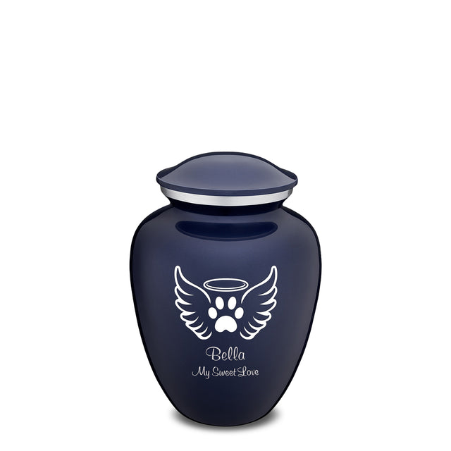 Honor the memory of your beloved pet with the Embrace Cobalt Blue Pet Angel Wings Cremation Urn for ashes. This beautiful urn displays a minimalistic pet design. This gorgeous urn is a perfect resting place and forever home for your darling pet.