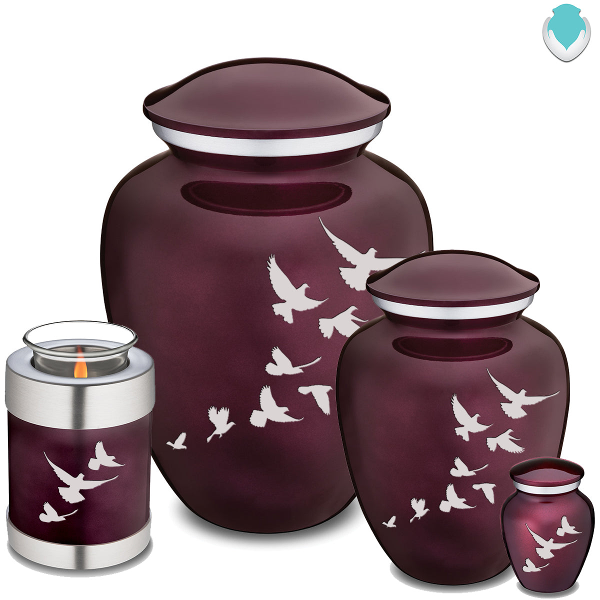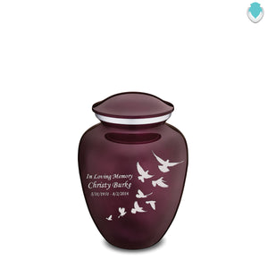 Honor the memory of your loved one with a Medium Embrace Doves Cremation Urn for Ashes. This beautiful urn displays a flock of doves flying upwards. This is a perfect resting place for someone who embodied freedom and peace.