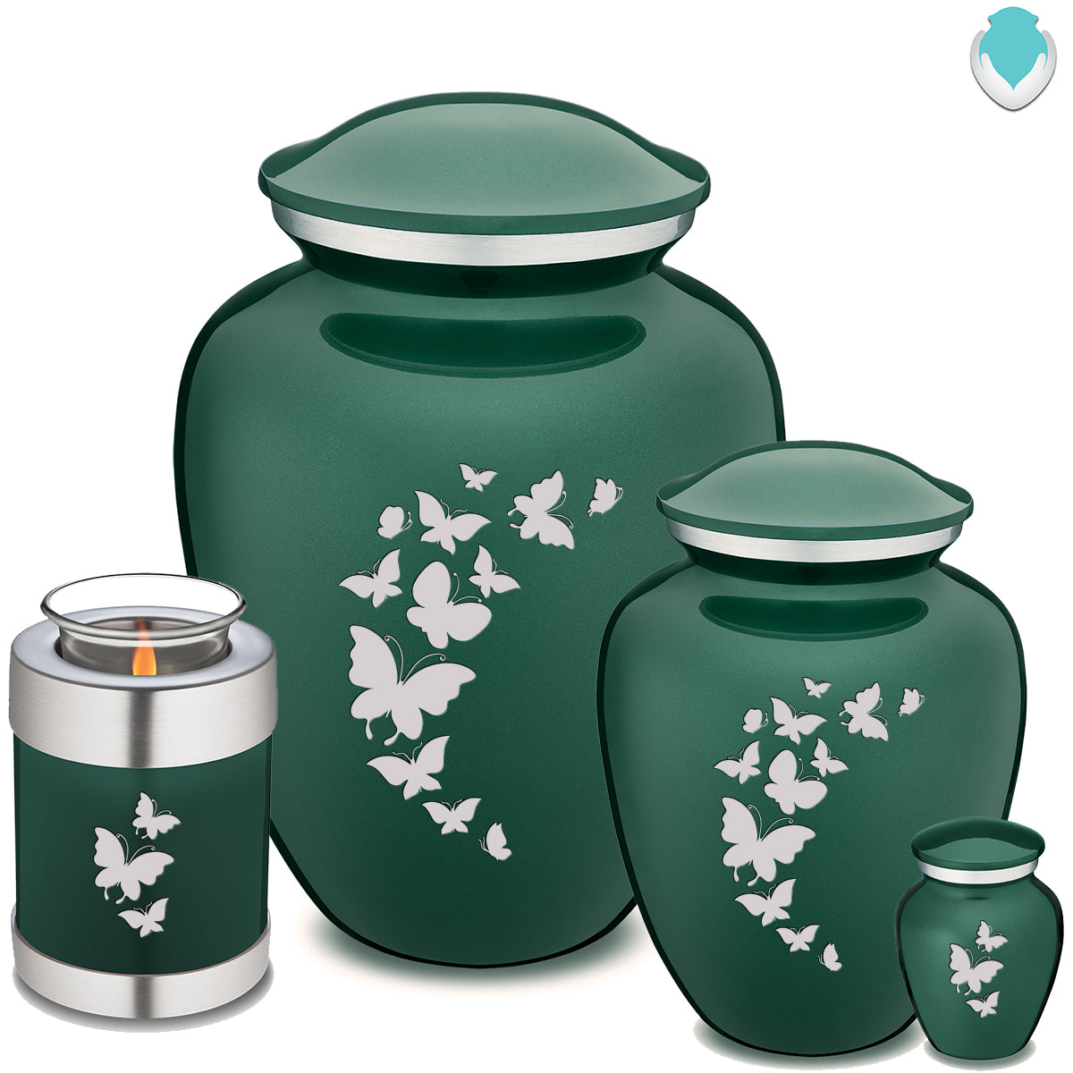 Honor the memory of your loved one with a Medium Embrace Butterfly Cremation Urn for Ashes. This beautiful urn displays a flight of butterflies flying upwards. This is a perfect resting place for someone who embodied endurance, change, and renewal.