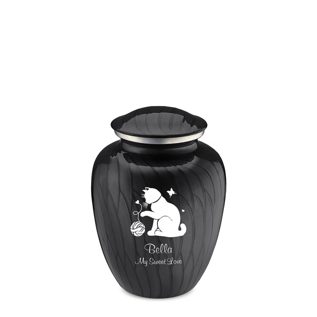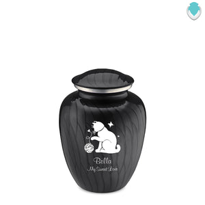 Honor the memory of your beloved cat with the Embrace Pearl Black Pet Fun Cat Cremation Urn for ashes. This beautiful urn displays a minimalistic cat design. This gorgeous urn is a perfect resting place and forever home for your darling cat.
