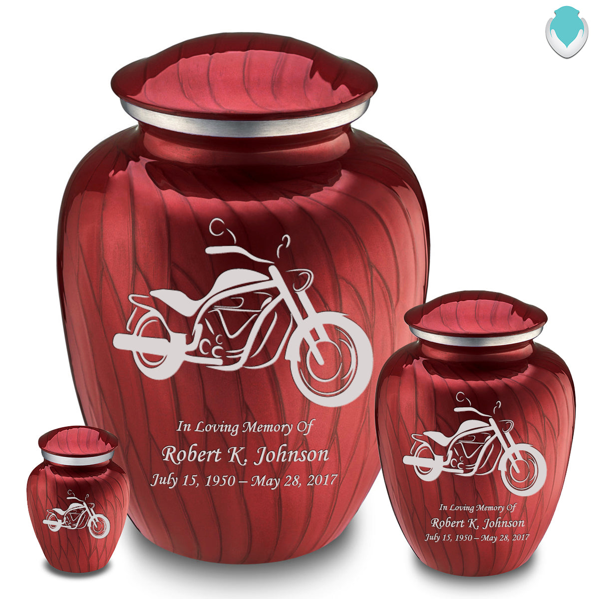 Honor the memory of your loved one with the Embrace Motorcycle Cremation Urn for Ashes. This beautiful urn displays a silver motorcycle. This is a perfect resting place for a free spirit, someone who enjoyed riding the open road.
