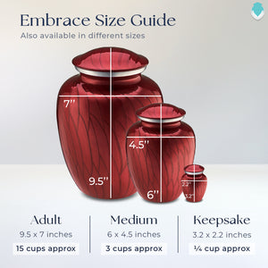 The Medium Embrace Urns have a simple yet elegant design that combines the classic urn silhouette with modern motifs. This medium urn has a capacity of 44 Cu Inches, making it suitable for holding a portion of adult ashes or ashes of anyone 44 lbs. or less.
