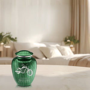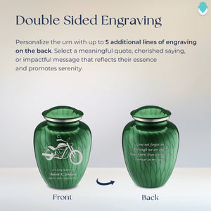 Honor the memory of your loved one with the Embrace Motorcycle Cremation Urn for Ashes. This beautiful urn displays a silver motorcycle. This is a perfect resting place for a free spirit, someone who enjoyed riding the open road.