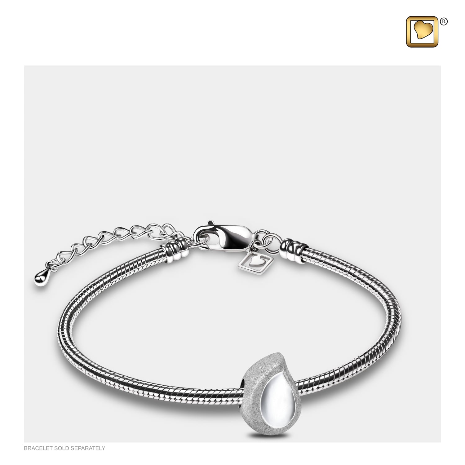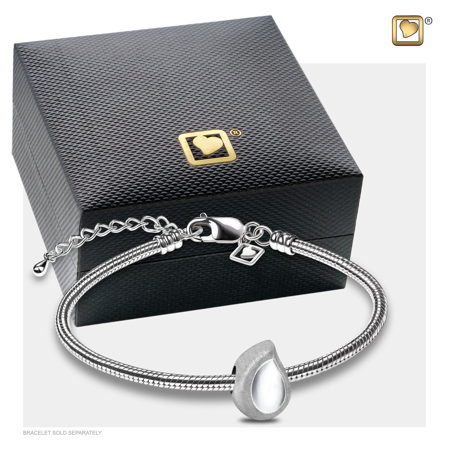 The TearDrop Rhodium Plated bead is an elegant and graceful two-toned cremation jewelry bead that can be a wonderful gift in the event of a loss.
