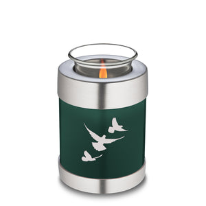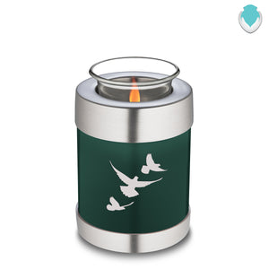 Honor the memory of your loved one with a Tealight Embrace Doves Cremation Urn for Ashes. This beautiful urn displays a flock of doves flying upwards. This is a perfect resting place for someone who embodied freedom and peace.