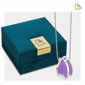 The Tulip™ Ashes Pendant in Pearl Purple and Polished Silver by LoveUrns® is a compassionate and nature-inspired jewelry piece that allows you to hold a cherished remembrance of your loved one close to your heart, forever preserving the profound bond you share.
